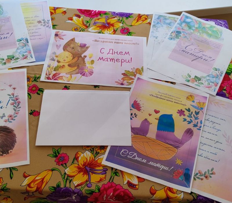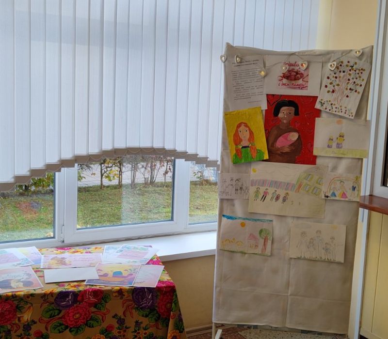 Тематическая зона размещена в фойе поликлиники, где каждый желающий может бесплатно заполнить и отправить маме поздравительную открытку.