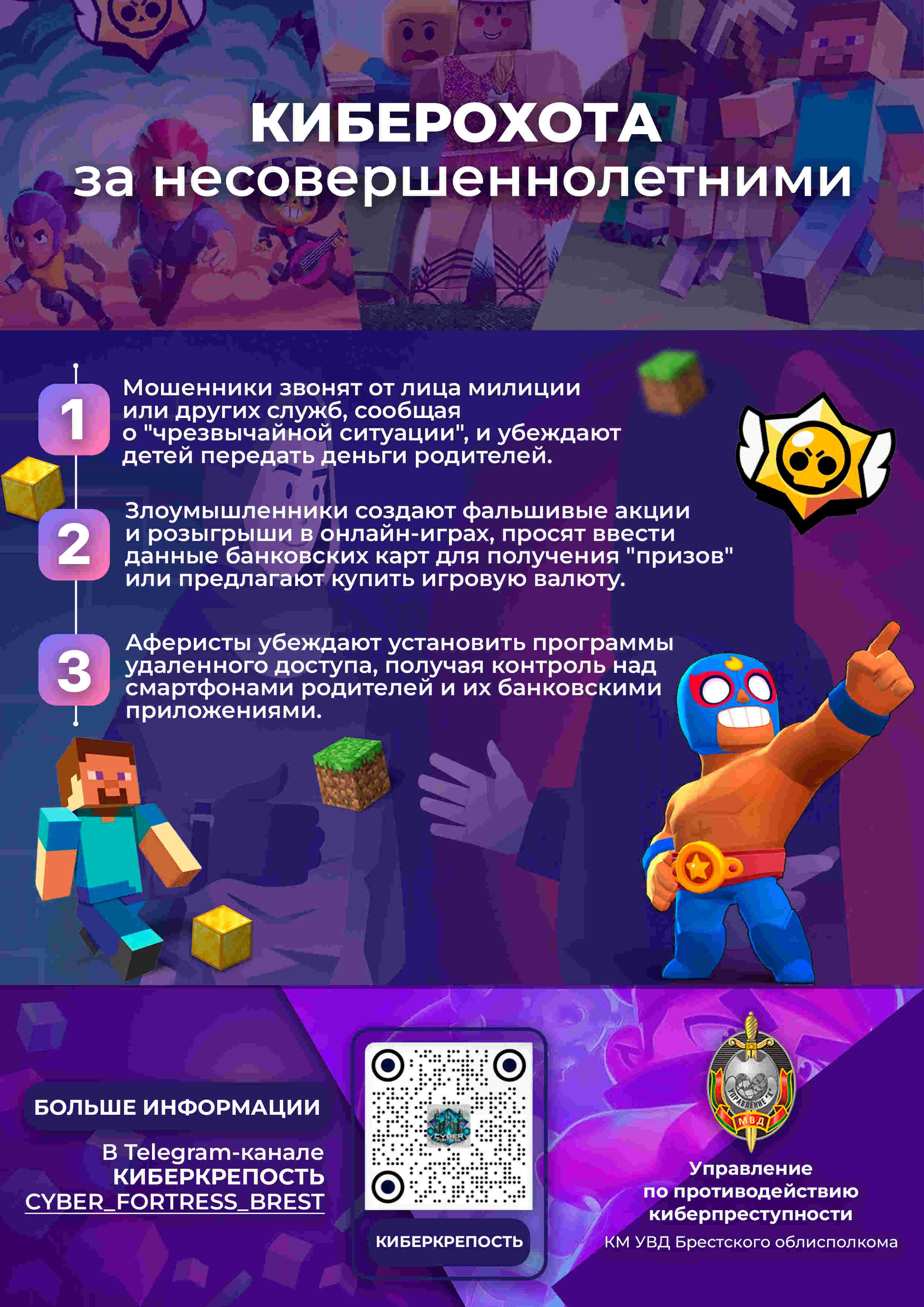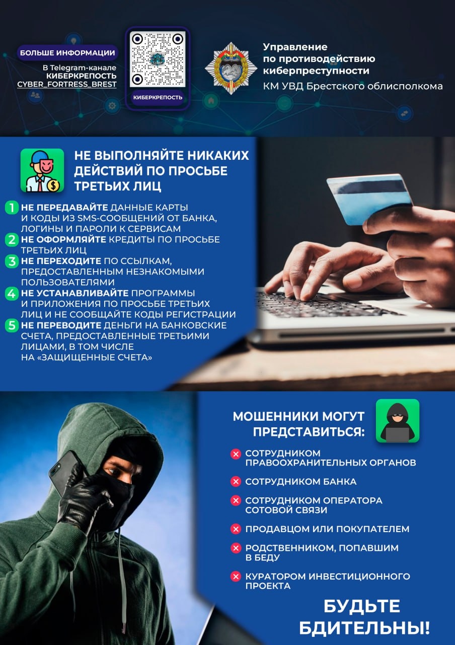 Рекомендации для сотрудников правоохранительных органов. Постоянно повышайте свою осведомленность о новых видах и схемах кибермошенничества. Следите за новостями, аналитическими материалами и рекомендациями профильных ведомств. Особое внимание уделяйте уязвимым категориям граждан: пожилым людям, несовершеннолетние, а также тем, кто активно пользуется интернетом, но недостаточно осведомлен о рисках. Подчеркивайте важность критического мышления: учите граждан проверять любую информацию, особенно ту, что вызывает беспокойство или предлагает легкую прибыль. Объясняйте, что правоохранительные органы, банки и государственные структуры никогда не запрашивают конфиденциальные данные по телефону или в мессенджерах и не требуют переводить деньги на «безопасные» счета. Акцентируйте внимание на ответственности «дропов», чтобы граждане понимали риски предоставления своих счетов третьим лицам. Разъясняйте правила легального оборота криптовалют в Республике Беларусь.